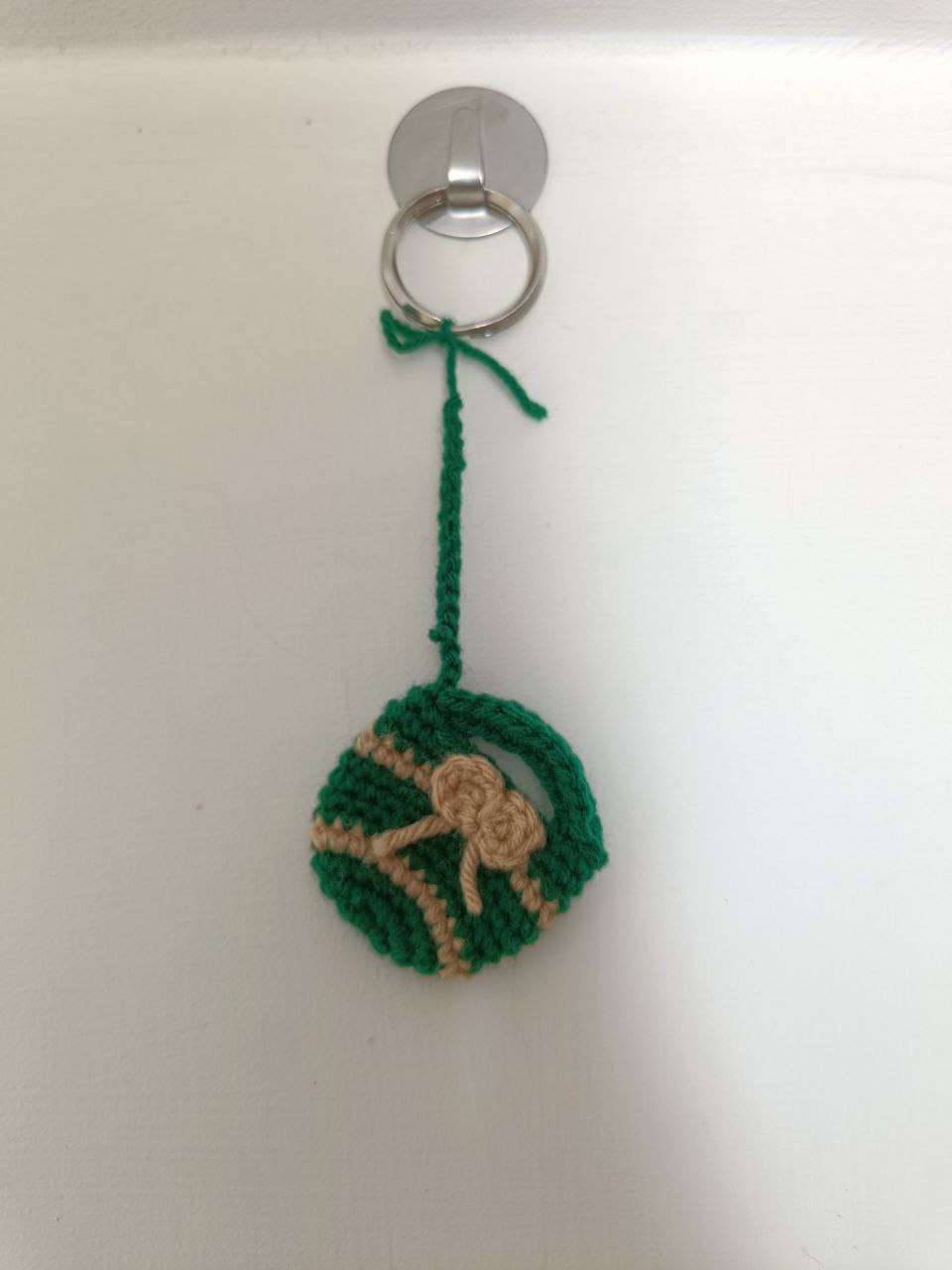 Add a touch of charm to your accessories with this beautifully crafted crochet gift box keychain. Designed in a rich green color with delicate beige ribbon details and a cute bow, this keychain resembles a tiny, wrapped present. Handmade with soft and durable yarn, it makes for a unique and thoughtful gift or a stylish addition to your keyring, bag, or backpack. Perfect for those who love creative, handmade accessories!
