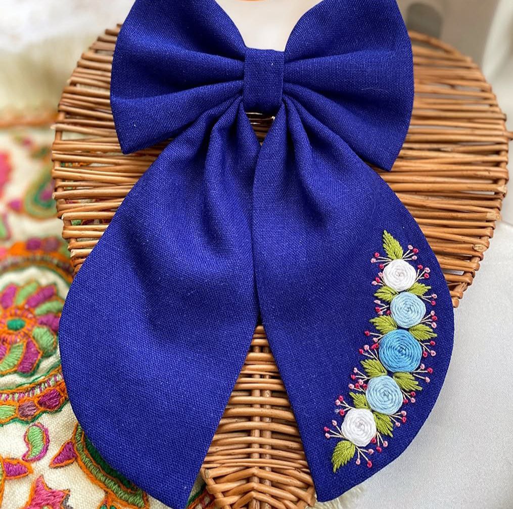 Royal Blue Floral Embroidered HairBow Royal Blue Floral Embroidered HairBow